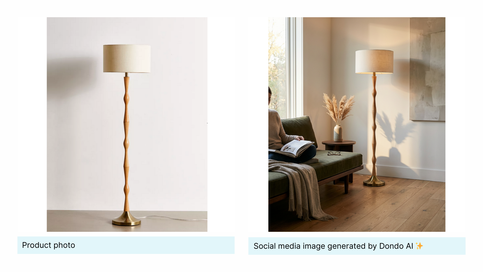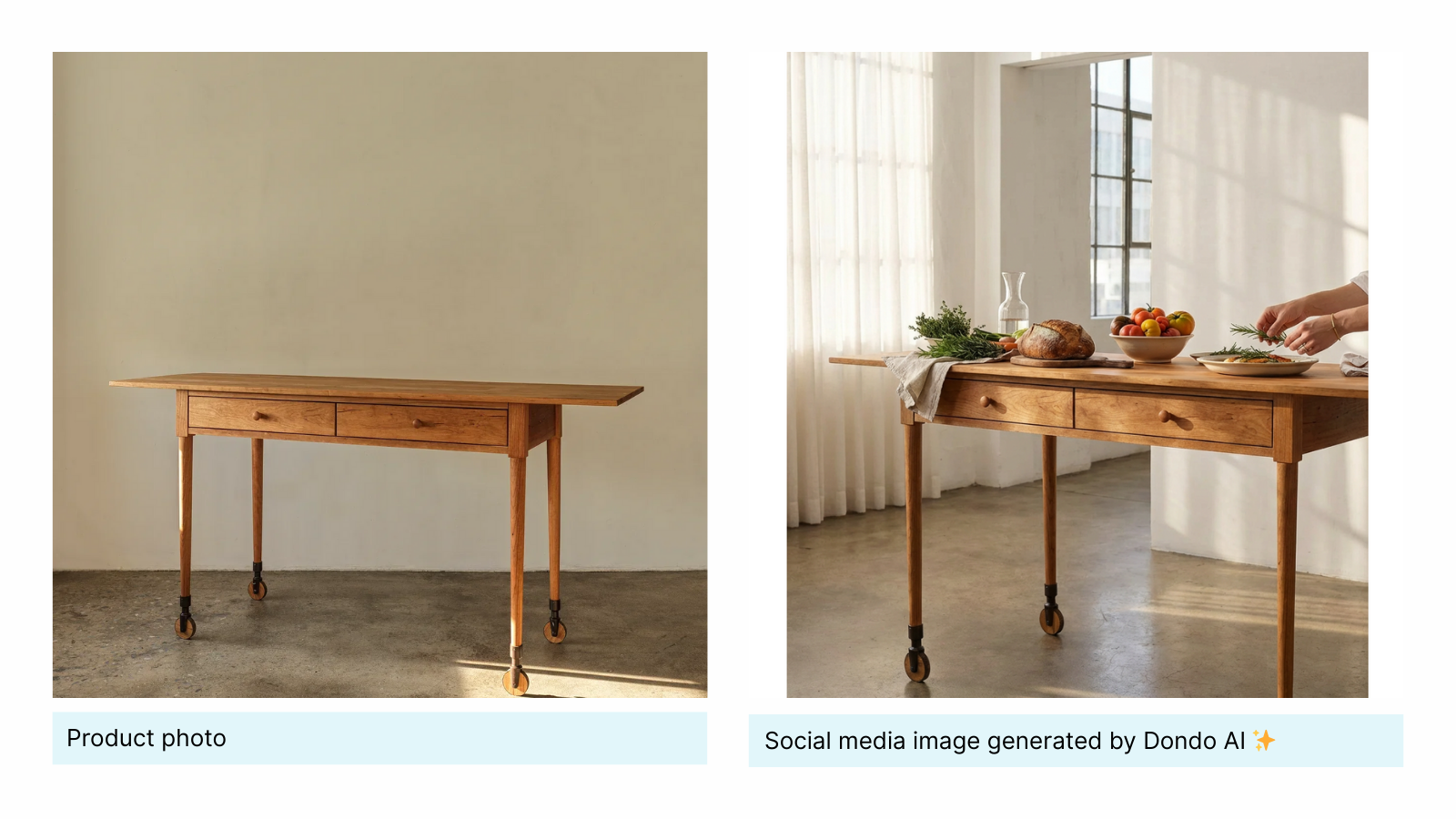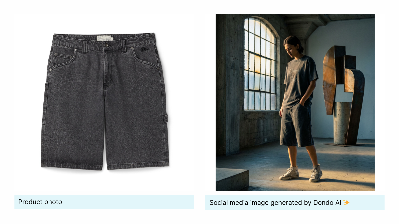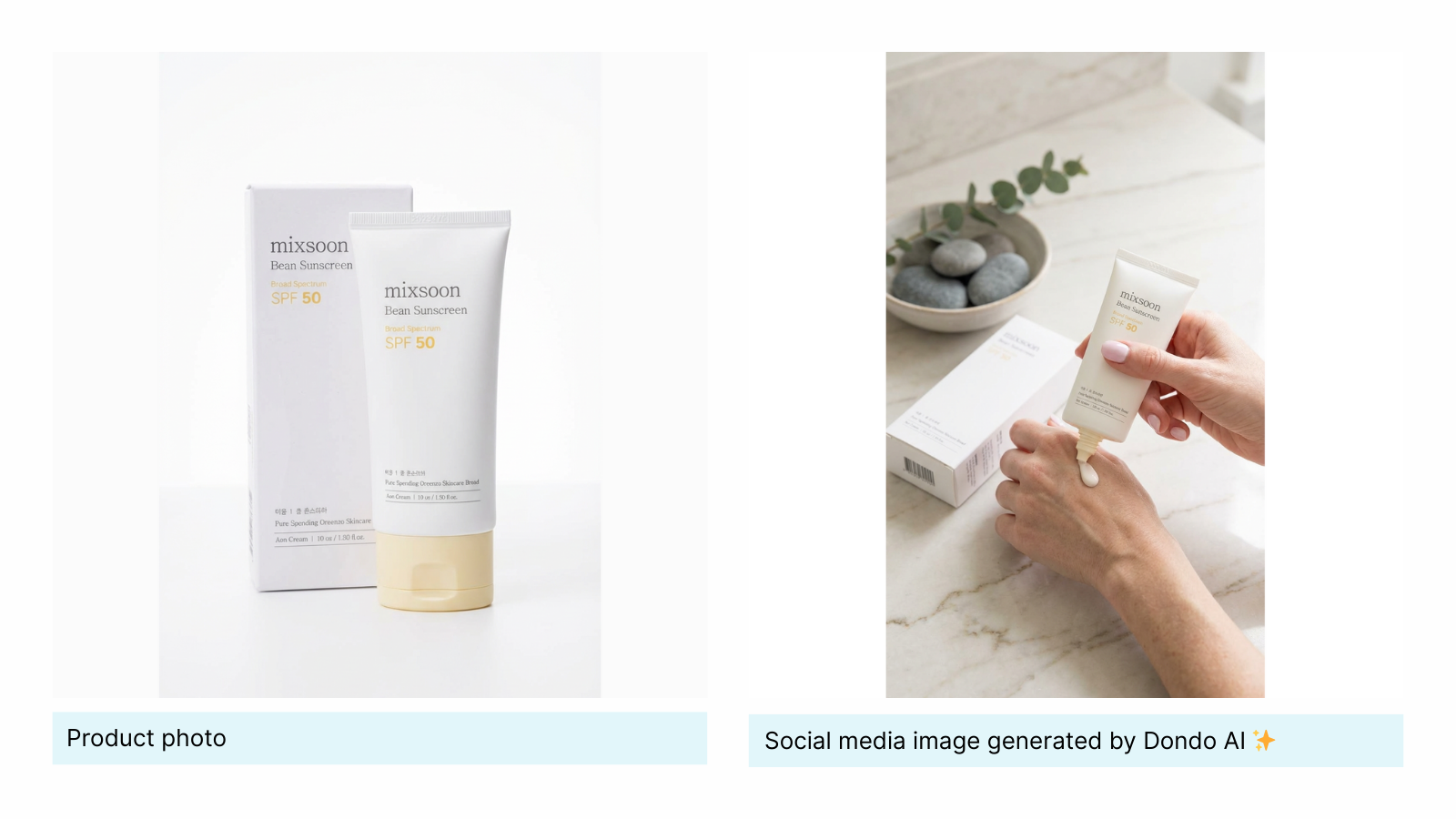 Dondo simplifies creating product images for social media, letting you generate professional, consistent visuals in seconds with just a click.