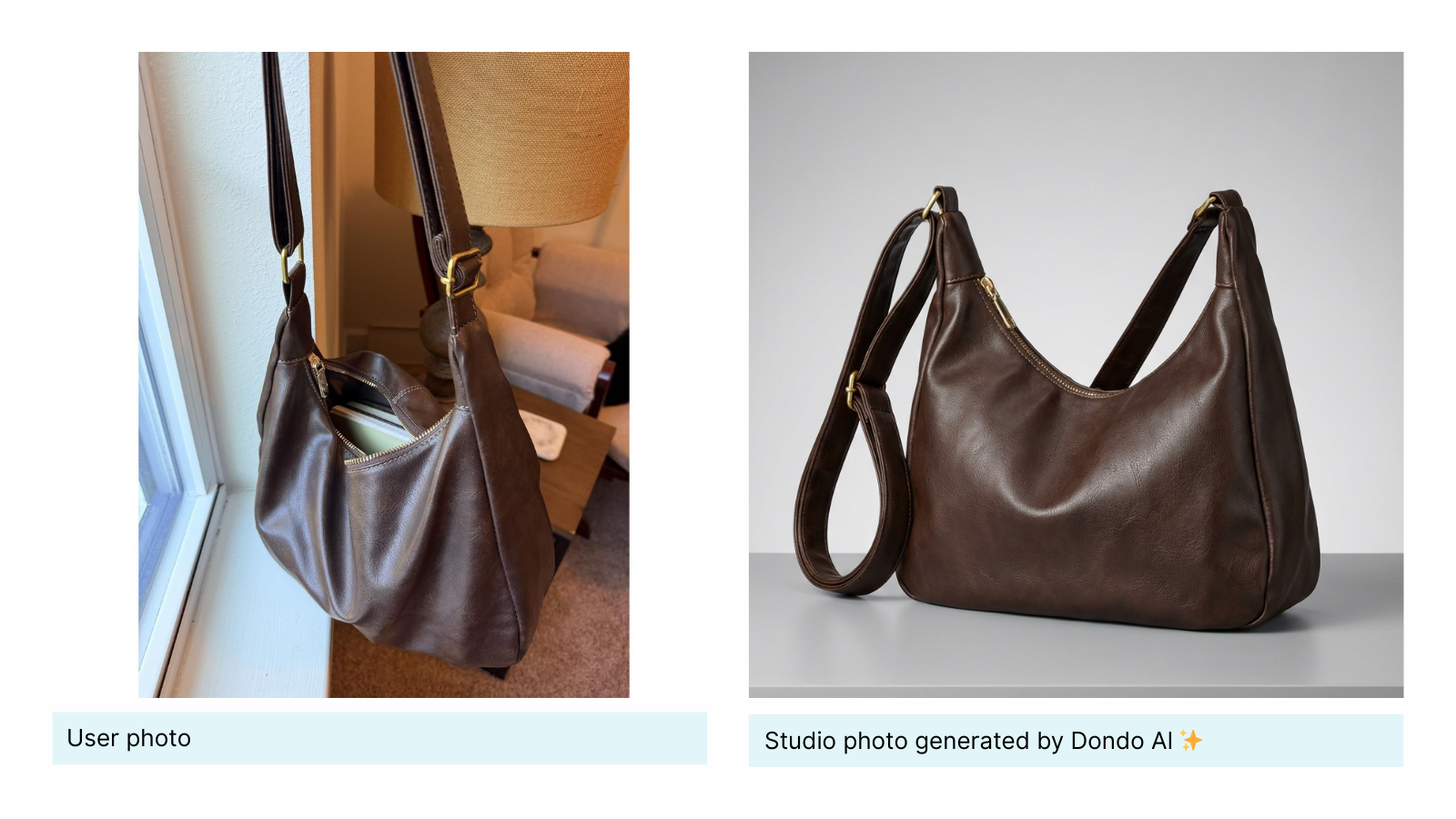With this context Dondo generates clean and consistent studio photos that are tailored to your brand and optimized for conversion.