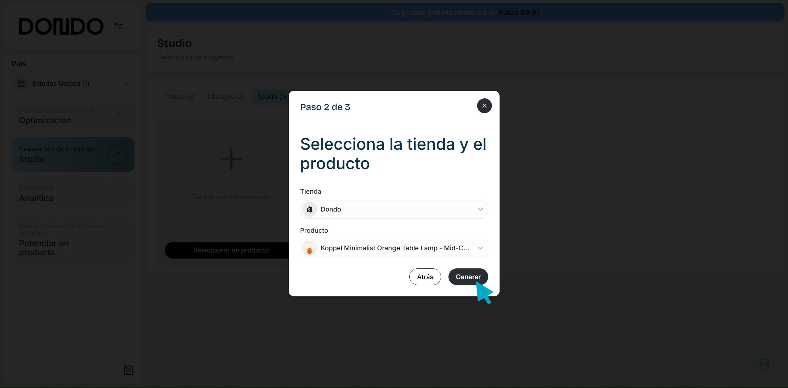 4. Selecciona el producto para el que deseas generar la imagen y haz clic en “Generar”