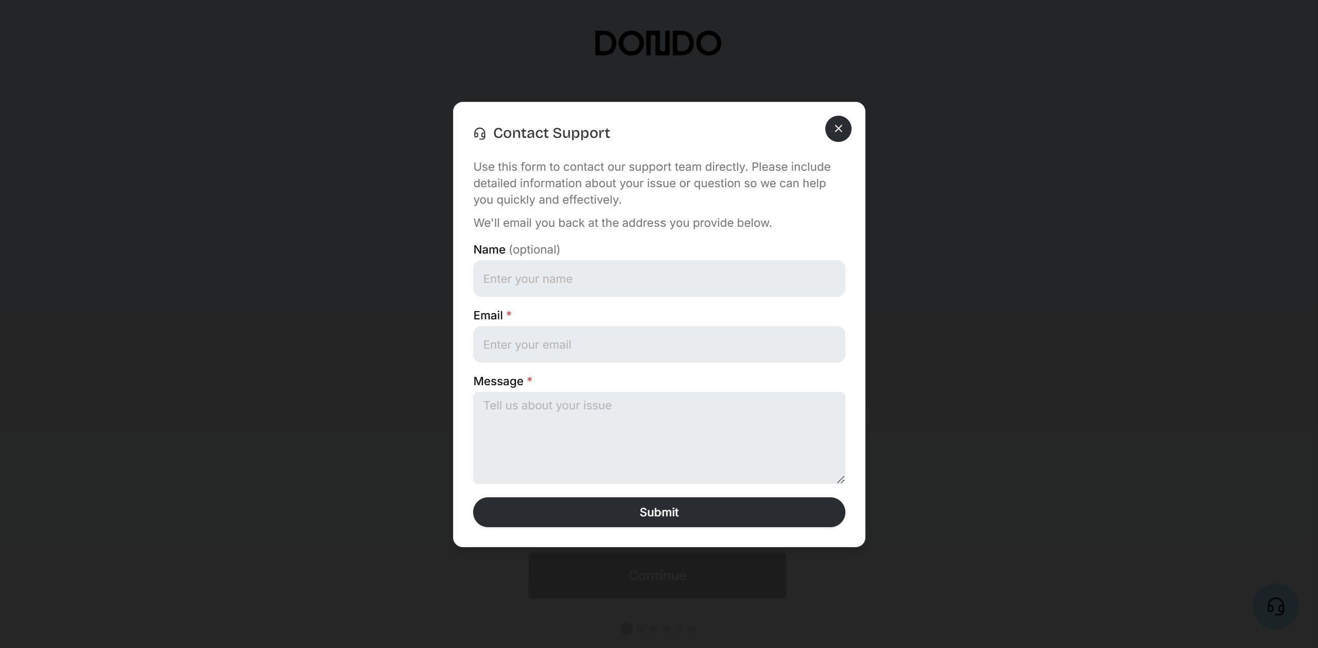 You can also email us directly at help@dondo.com. Our team will get back to you as soon as possible and help you resolve any questions or technical issues.