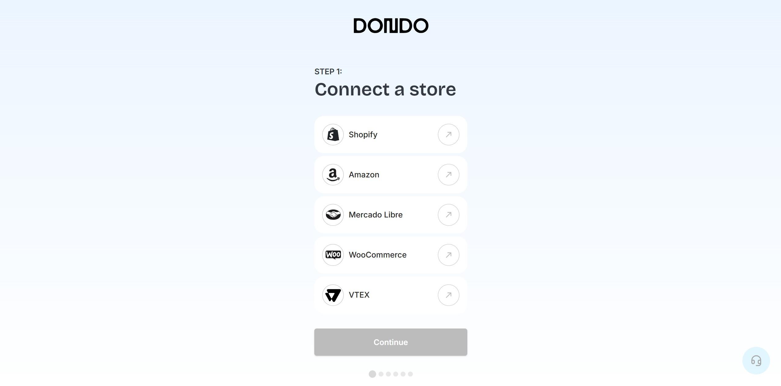 If you experience any issues while creating your account, connecting your store, or completing onboarding, you can contact Dondo’s support team by clicking the support bubble in the bottom right corner of the screen.