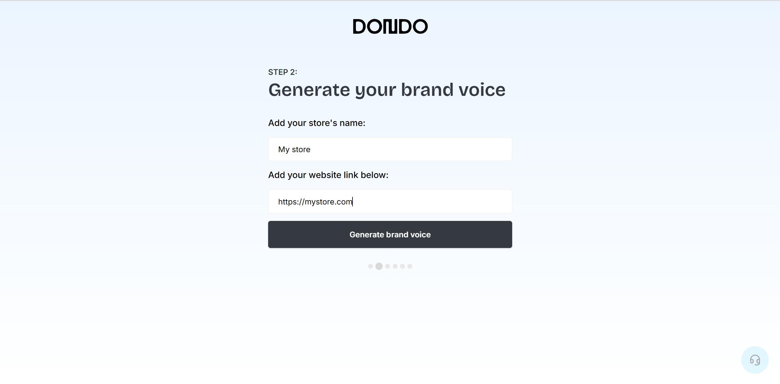 After connecting your store, Dondo asks for your website URL to extract your brand voice. Our AI analyzes your website content, social media, and customer reviews to identify your brand’s tone, personality, and values.